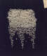 Design of sead beads and round rhinestones on raw silk.