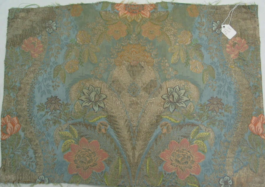 Polychrome silk brocade wiht silver-metallic weft yarns