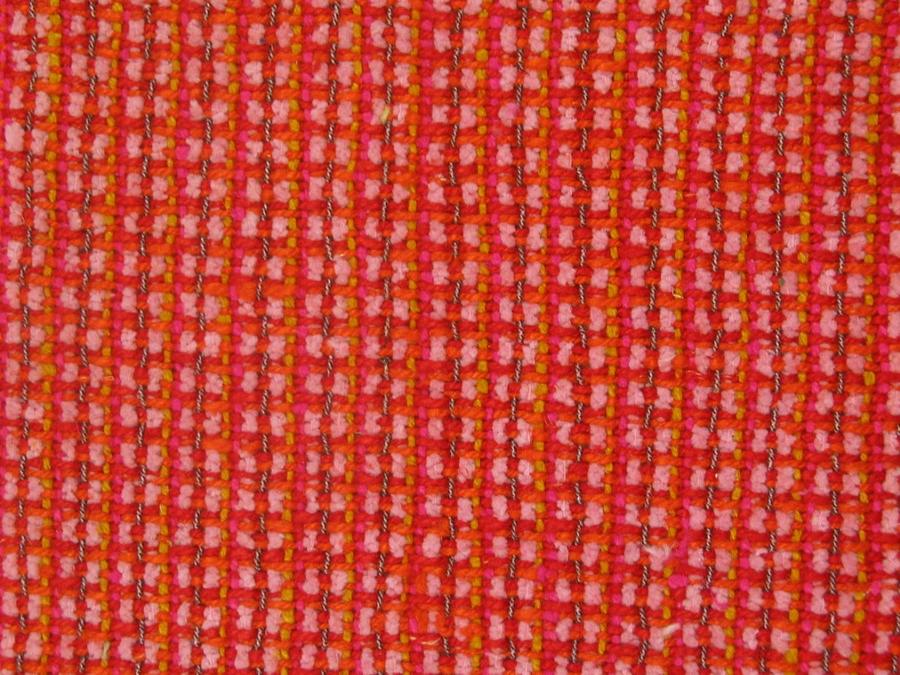 Cotton chenille, metallic-wrapped yarn, synthetic fiber; plain weave, twill weave