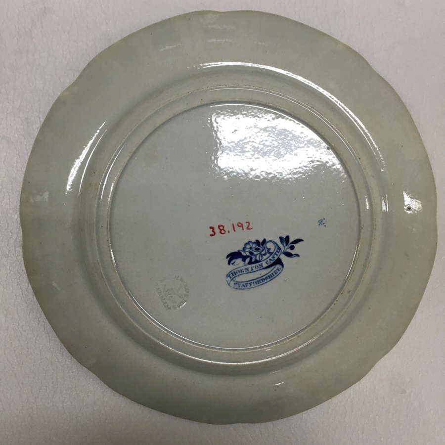 Marks: On back, title on ribbon with flower spray; impressed on back, potter's name and BURSLEM enclosing spread eagle.