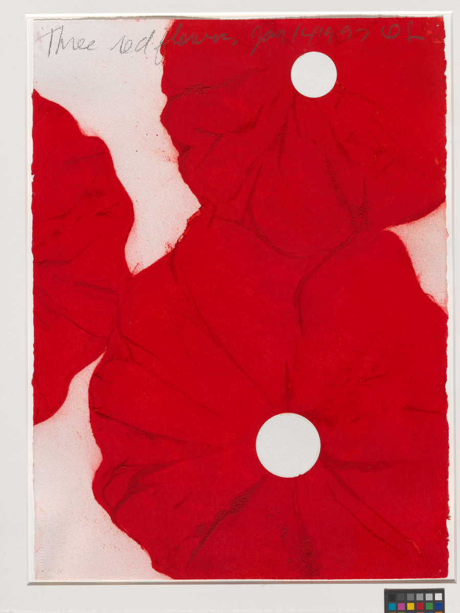 Inscribed in graphite, recto along left edge: Three Red Flowers Jan 14 1997 DS