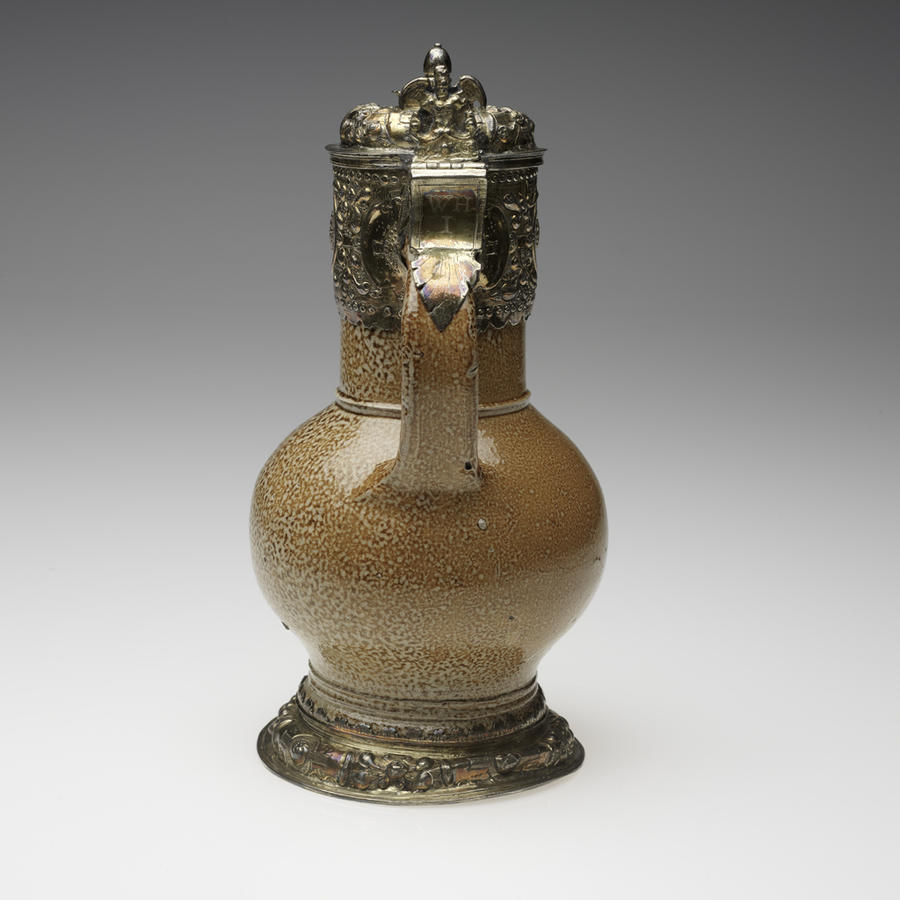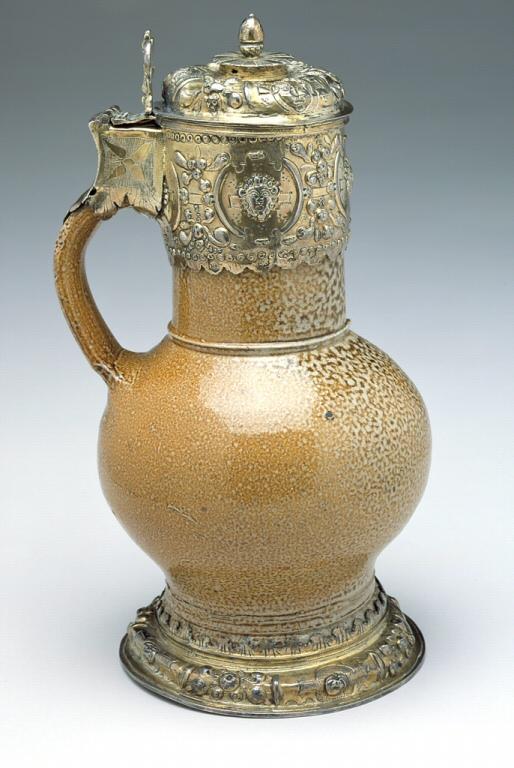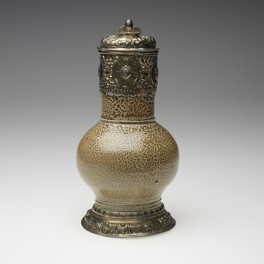 Stoneware with salt glaze (German) and gilded silver mounts (English)