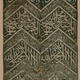 Four different repeating inscriptions: (Top narrow band) 1) Lo! Allah and his angels shower blessings on the Prophet. O ye who believe! Ask blessings on him and salute them with a worthy salutation. 2) O Allah! Bless Muhammed and his family and his companions and (grant them) peace.3.Muhammed is not the father of any man among you, but he is the messenger of Allah and the Seal of the Prophets.4. There is no god but Allah; Muhammed is the Prophet of Allah.