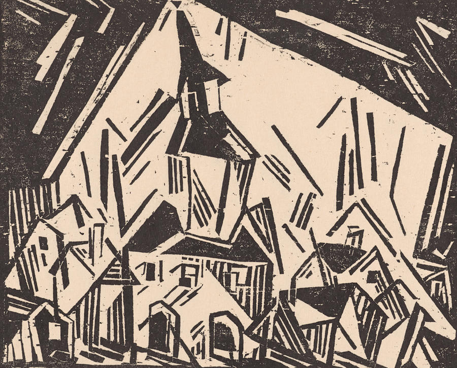 Original--Recto:signed in pencil under image on left:Lyonel Feininger; titled on right:Zottelstedt Verso:in pencil in LL:46307/11.1130.49.A4/Auscher; in center of bottom edge:L. Feininger Zottlestedt Holz.