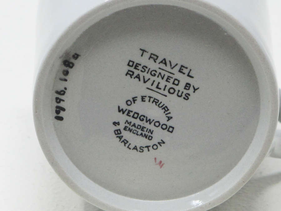 Marks: Printed on underside: TRAVEL/DESIGNED BY/RAVILIOUS/WEDGWOOD OF ETRURIA & BARLASTON/MADE IN ENGLAND; impressed: WEDGWOOD/IF 54