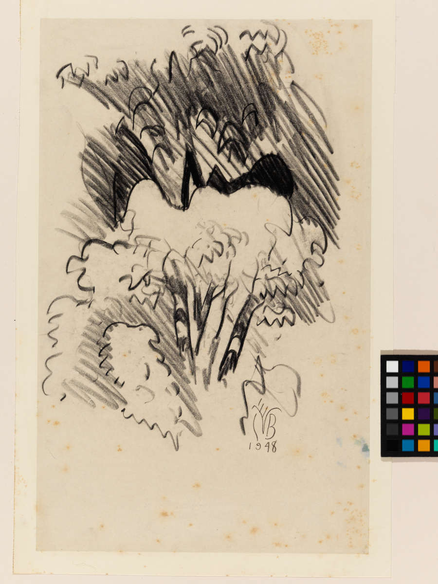 Marks: On verso of mount:"TREE INTERIOR" 1948/ A STUDY FOR "SUMMER AFTERNOON"/ MED. CONTE CRAYON/ PRICE - $125.00" in pencil, upper-center. Credit / Object Number