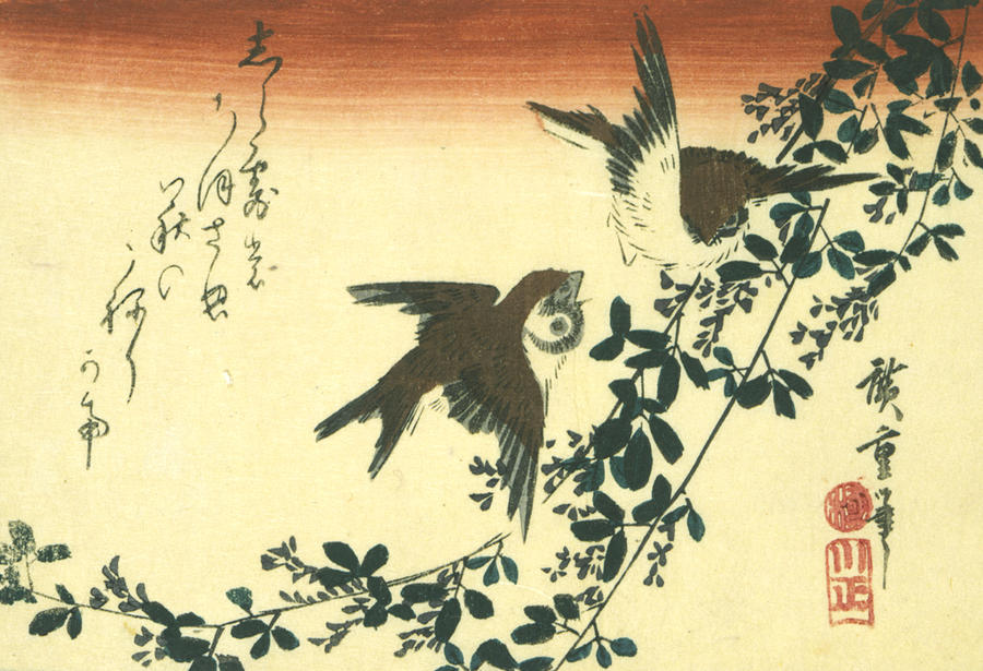 Tree Sparrows and Bush Clover (Hagi ni suzume)
