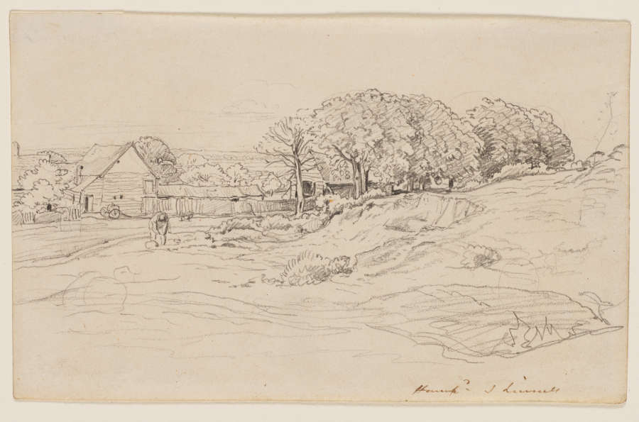 In brown ink, LR:Hamp J Linnell ; on verso in pencil, LR:7279 ; printed and pasted onto mat:79 J Linnell:Hampstead ; 105. J Linnell.Trees at Hampstead.