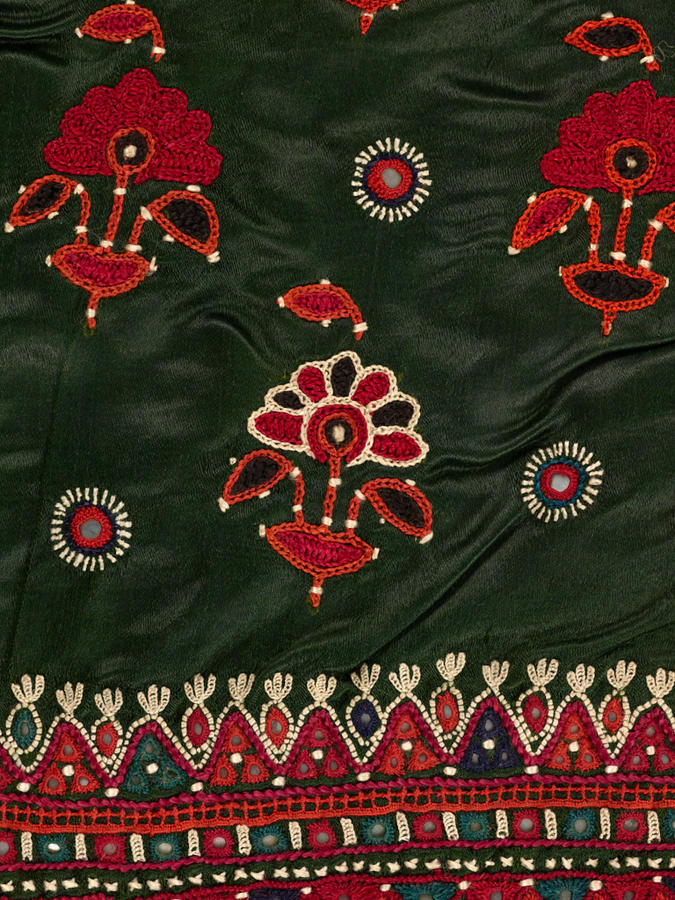 Silk; satin embroidered with silk and mirrors