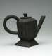 Two teapots in angled morning light. Black