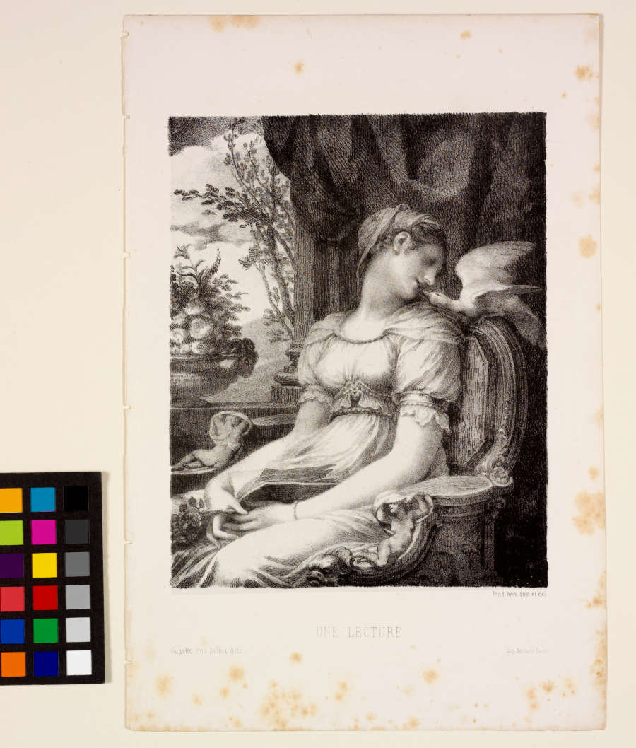 In Plate--In LL:Prud'hon inv. et del.;In LL:Gazette des Beaux Arts; titled in LC:UNE LECTURE; in LR:Imp. Bertauts, Paris