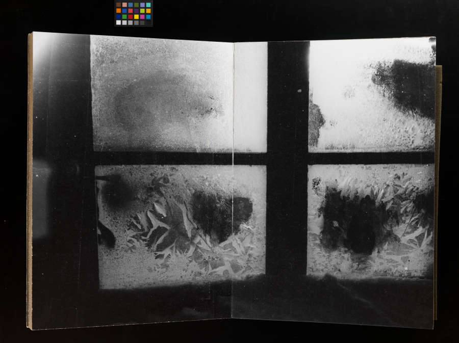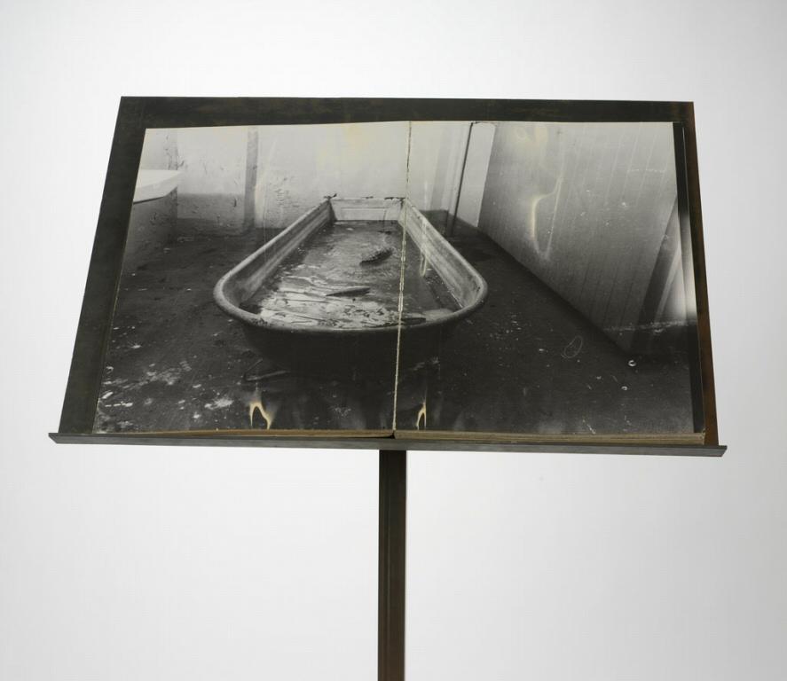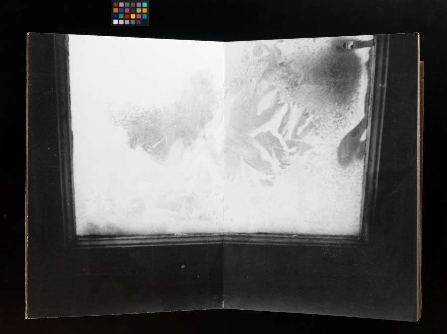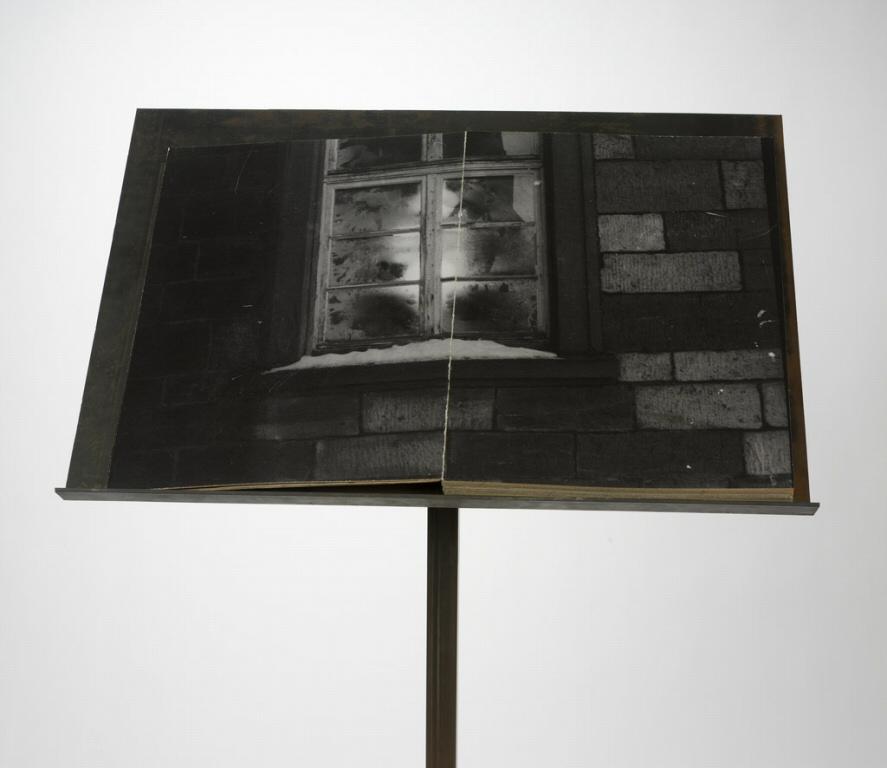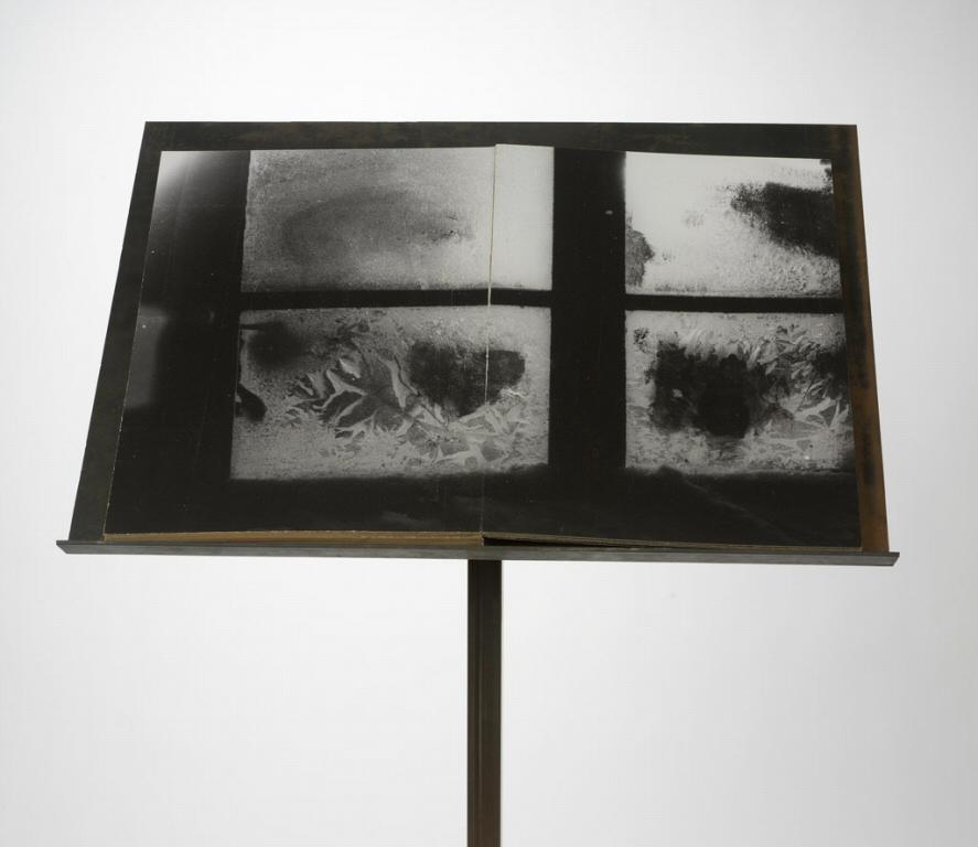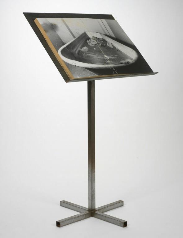 Bound book of gelatin silver prints and metal stand