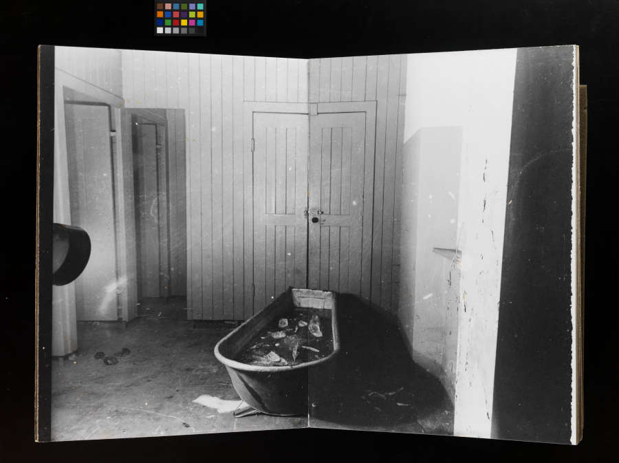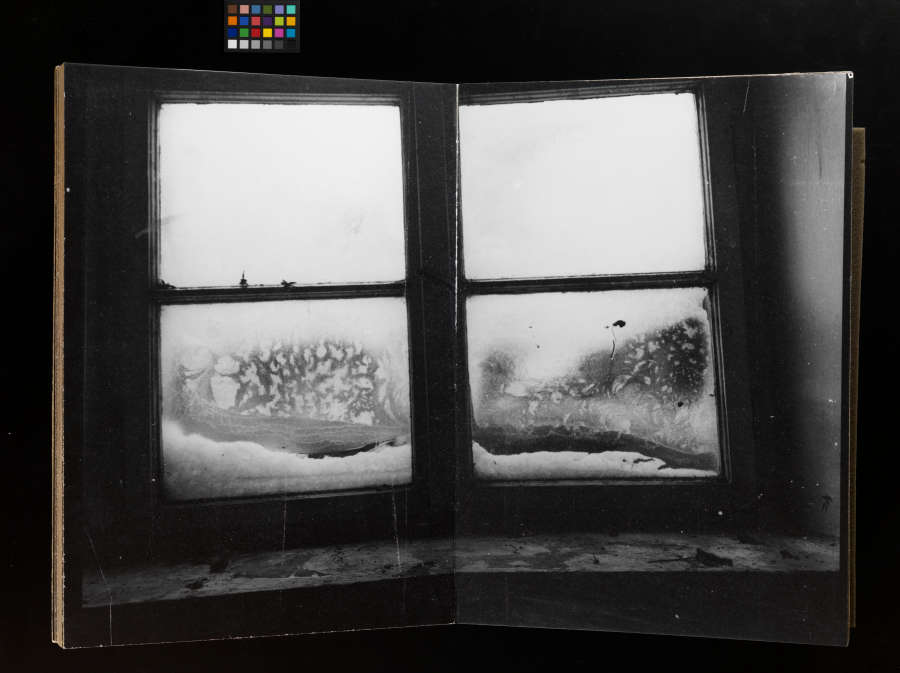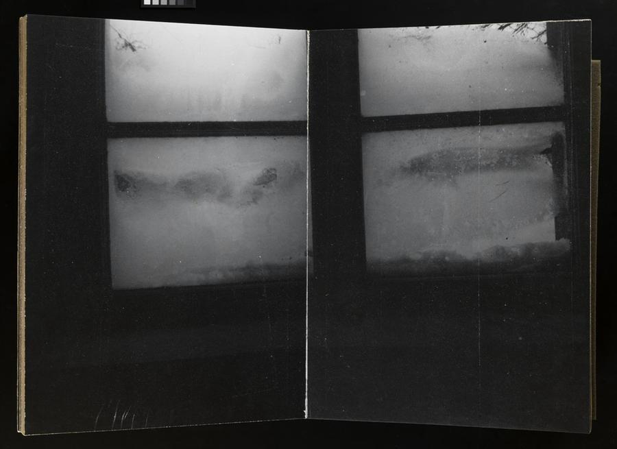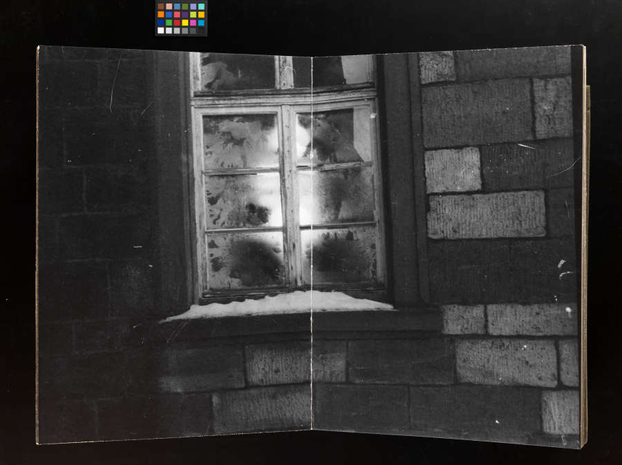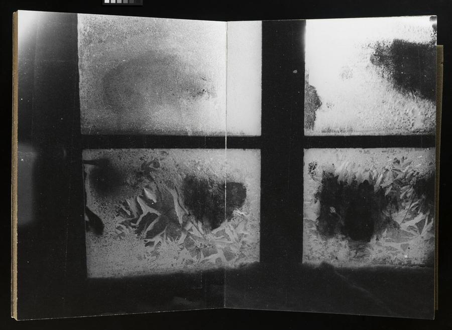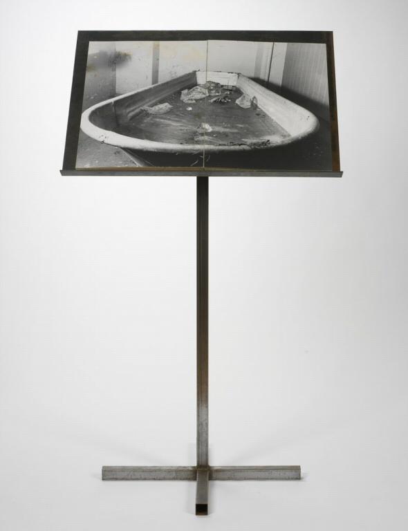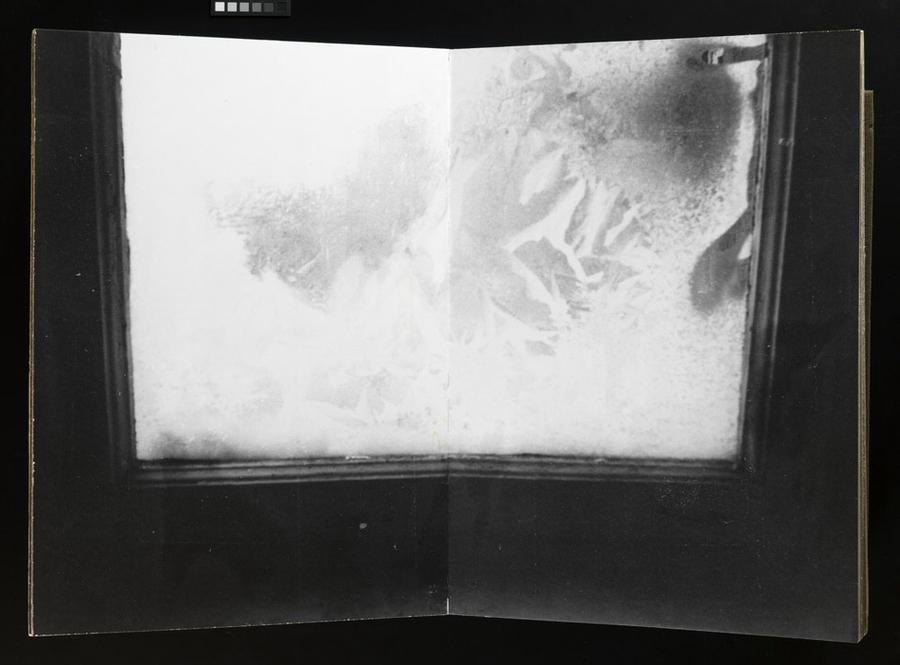 Bound book of gelatin silver prints and metal stand