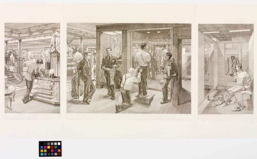 Inscribed in pencil, LL of first panel: "8/30" ; in LR of third panel, signed "Andrew Rafferty 2002"