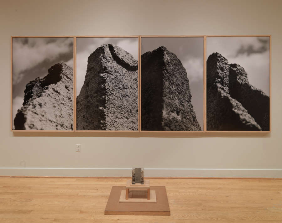 Mixed media (four gelatin silver prints with a cinderblock on a wooden platform)