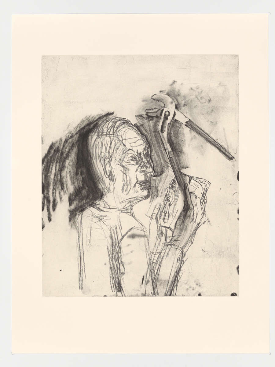 Etching, drypoint and softground over found crayon lithograph on Zerkall 450grs paper