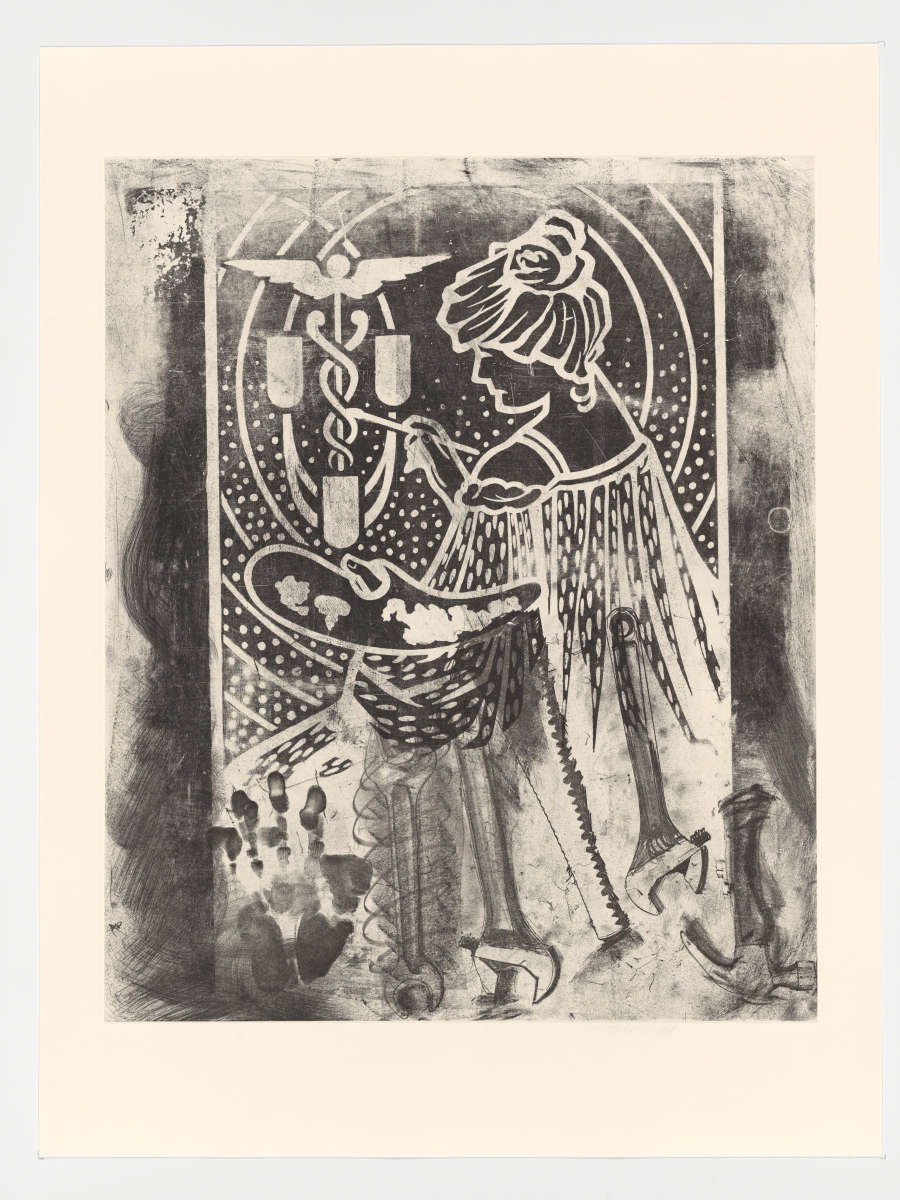 Etching, drypoint and softground over found lithograph on Zerkall 450grs paper