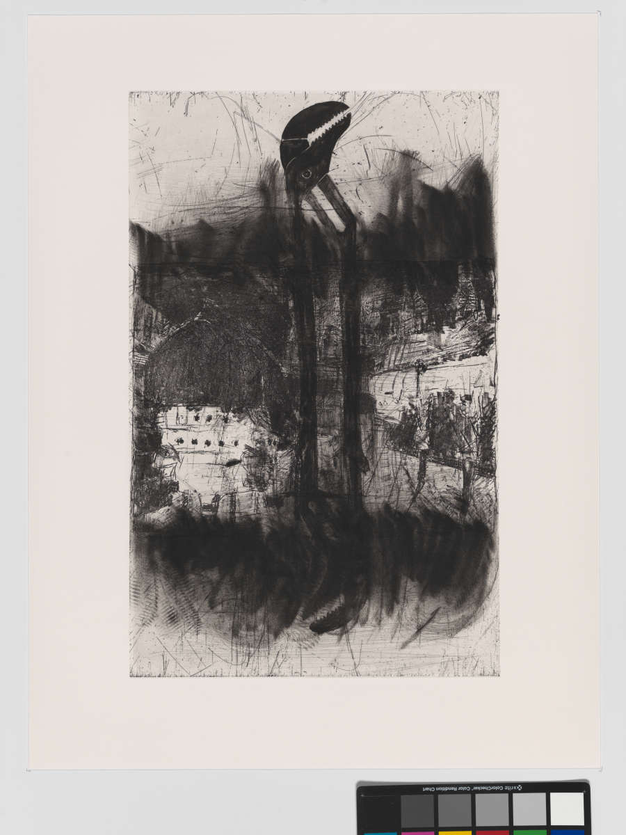 Etching, drypoint, and softground over found lithograph on Zerkall 450grs paper