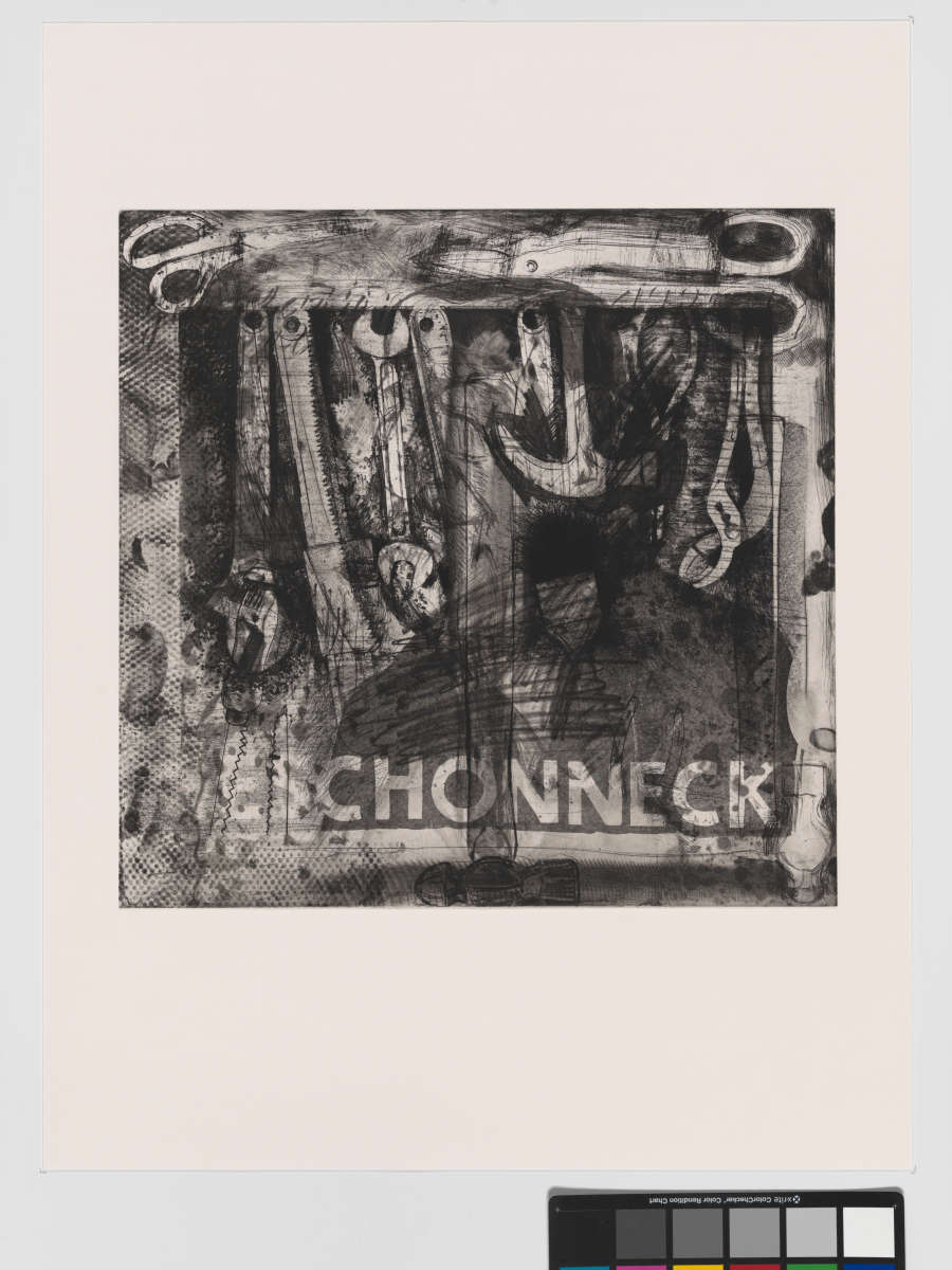 Etching, drypoint, and softground over found lithograph on Zerkall 450grs paper