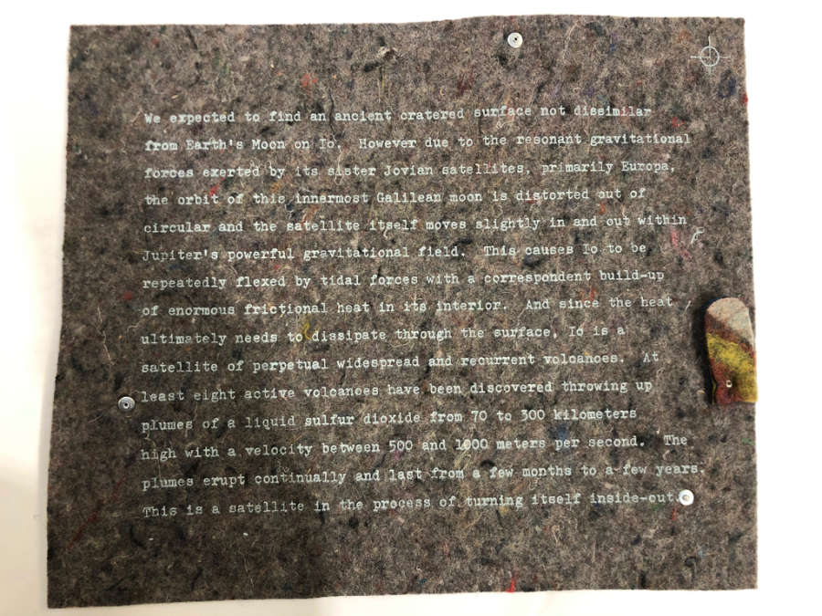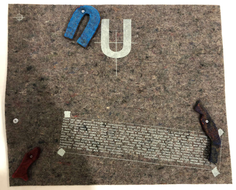 Screenprint and riveting with flocking adhesive on both sides of grey industrial felt