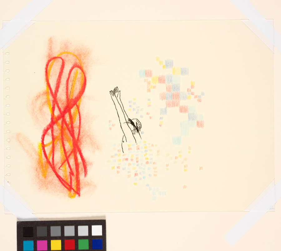 colored pencil; ink; pastel (crayon)