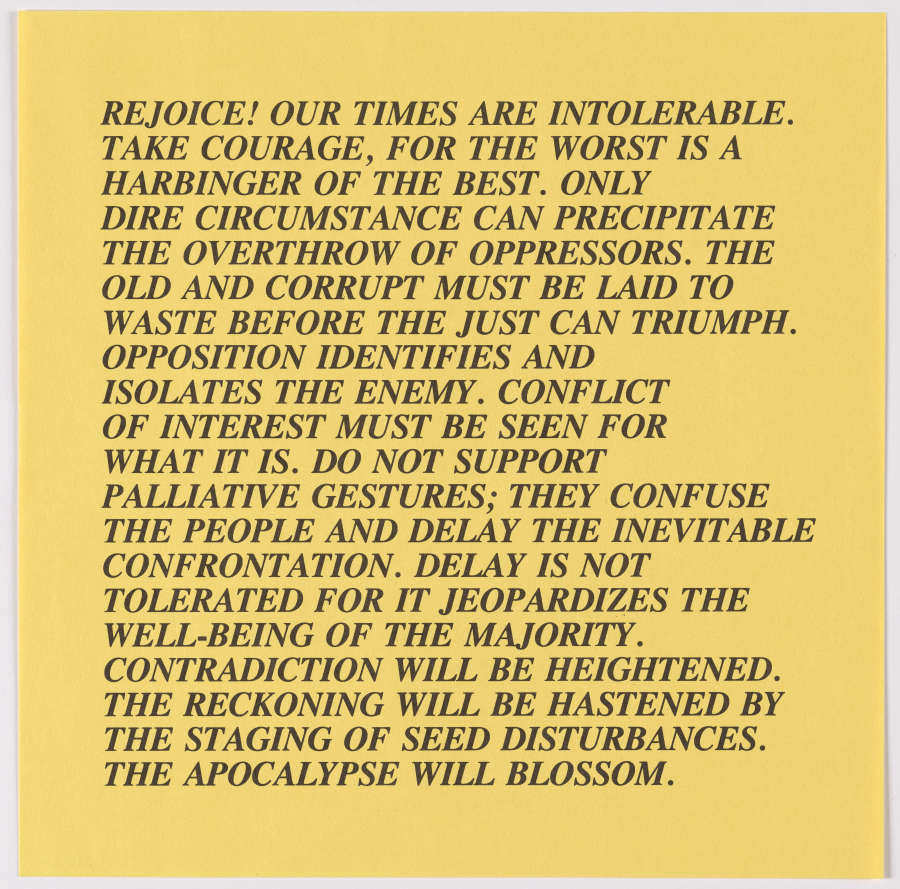 Untitled ("REJOICE! OUR TIMES ARE INTOLERABLE.")