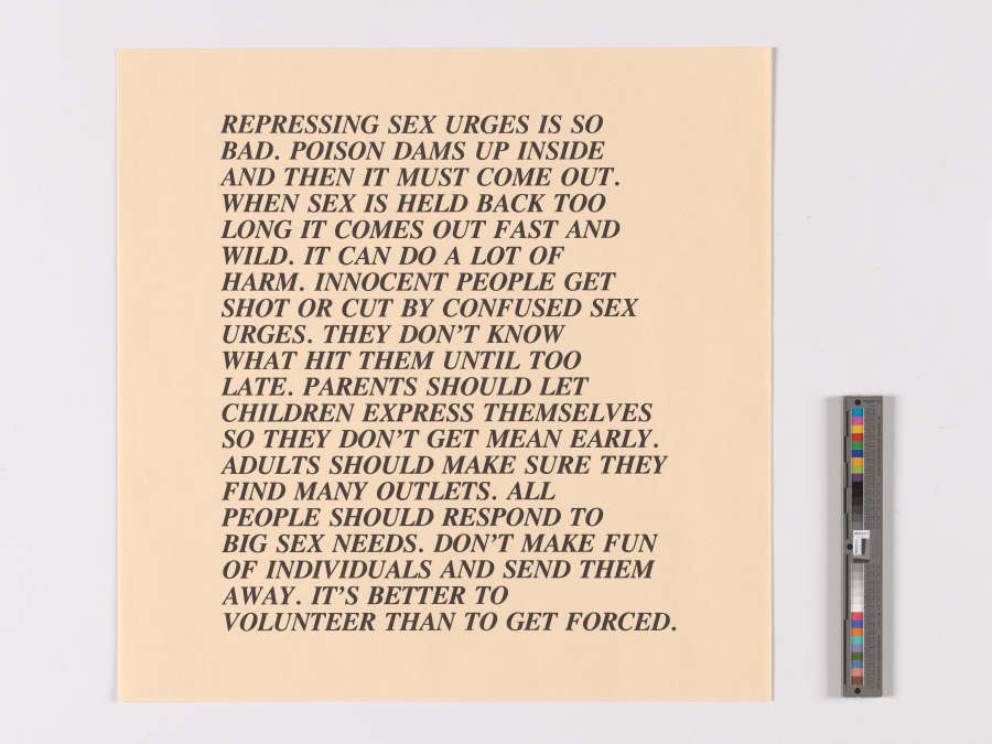 Untitled ("REPRESSING SEX URGES IS SO BAD."); Inflammatory Essays, 1979-1982 text date
