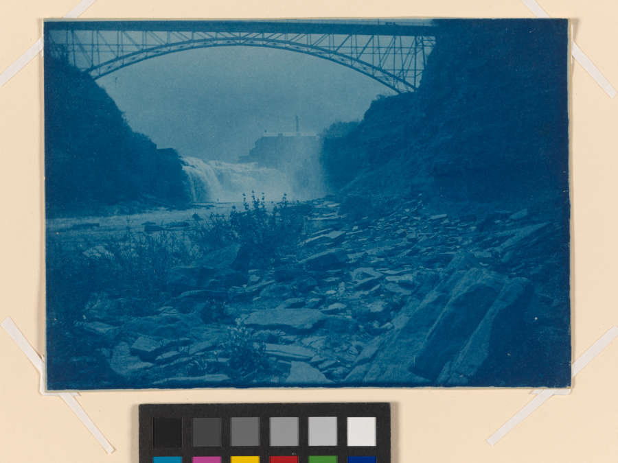 On verso of mount: in grey ink, "This is Rochester Falls"; in pencil, "1.0" in panel at upper left.