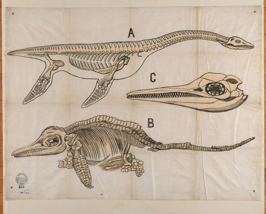 Marks: Working Mens Educational Union. King William St Trafalgar Square London; 211; verso, Jurassic Reptiles; verso, 922