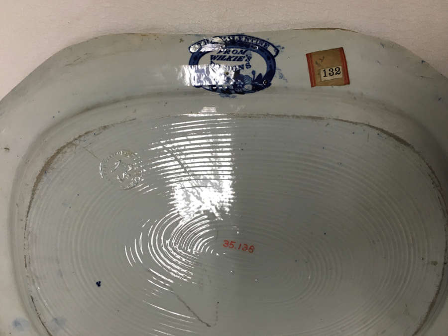 Marks: On back of rim, title above oval bearing:From Wilkie's Designs; and flower sprays; maker's name and mark impressed within circle on back.