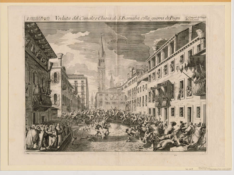 View of the Canal and Church of St. Barnabas with Battle of the Fists, from the series