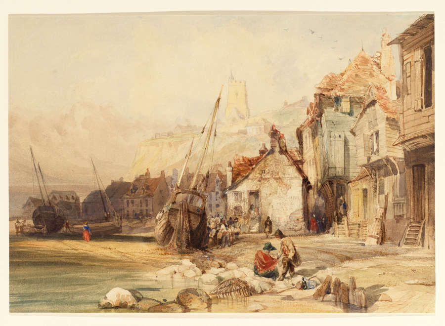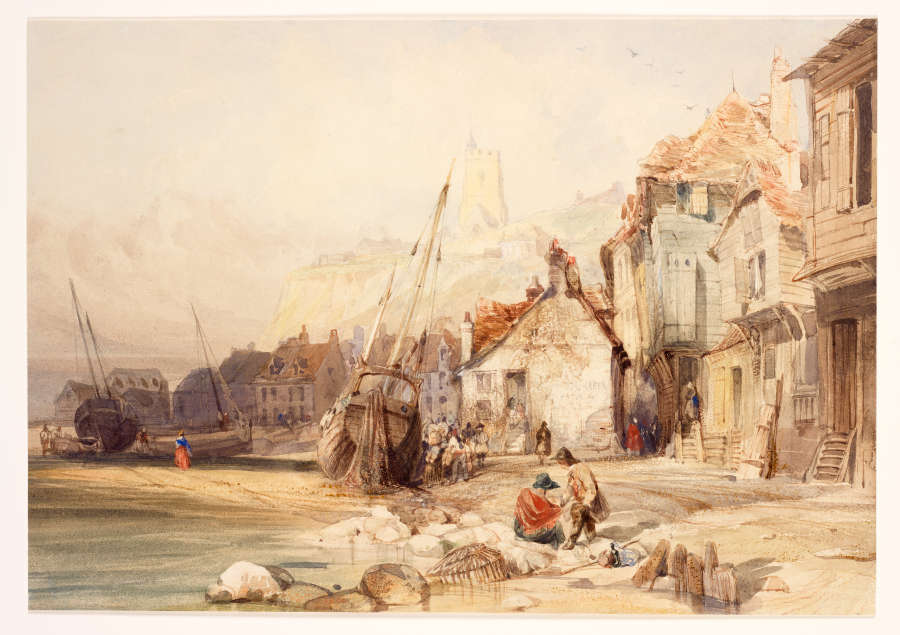 Watercolor and opaque watercolor applied with brush, scraped highlights, and graphite