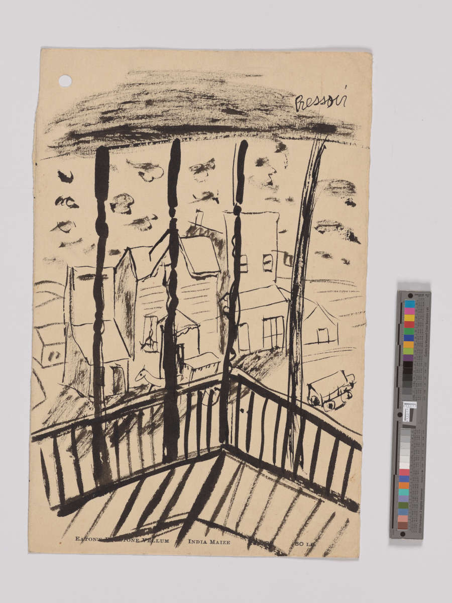 Inscriptions: Inscribed in pen and ink UR: "Pressoir"; in letterpress, along the bottom: "Eatons' Etchstone Vellum India Maize 80 Lbs"