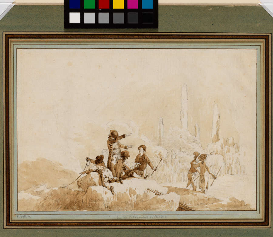 Inscribed in graphite on old mount: "Norblin / Vue de Catacombs de Rome"