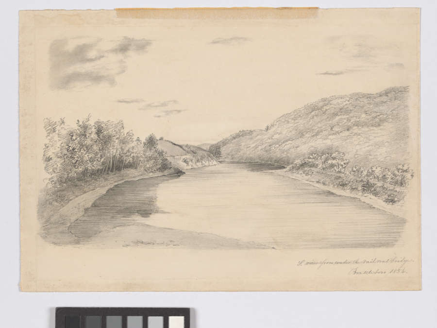 In plate:A view from under the railroad bridge/ Brattleboro 1854