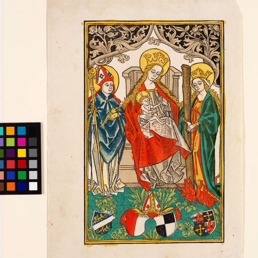 The images on this website can enable discovery and collaboration and support new scholarship, and we encourage their use. This object is in Copyright. This object is Virgin and Child with Saints Ulrich and Afra with the accession number of 30.086. To request new photography, please send an email to imagerequest@risd.edu and include your name and the object's accession number.