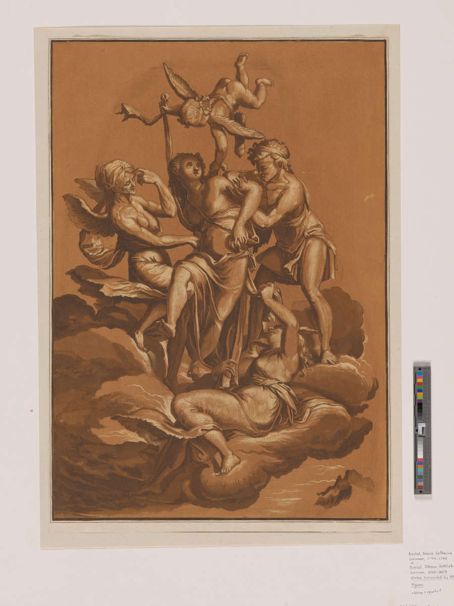 The images on this website can enable discovery and collaboration and support new scholarship, and we encourage their use. This object is in Copyright. This object is Virtue Surrounded by Allegorical Figures with the accession number of 74.076. To request new photography, please send an email to imagerequest@risd.edu and include your name and the object's accession number.