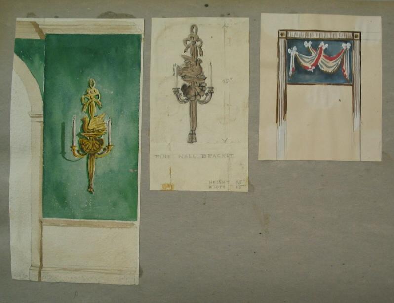 On recto, on central image in pencil: "45" / PINE WALL BRACKET / HEIGHT 45" / WIDTH 15" ", and on cardboard, also in pencil from left to right: "A / B / C".