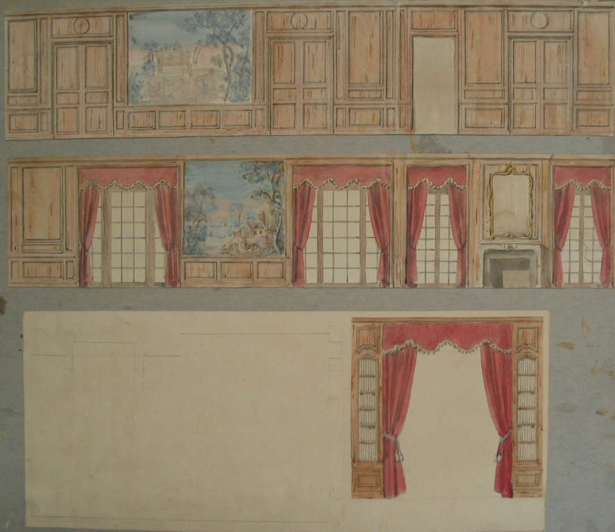 In the lowest panel in the lower right corner in pencil (on recto): "3/8"=1' "