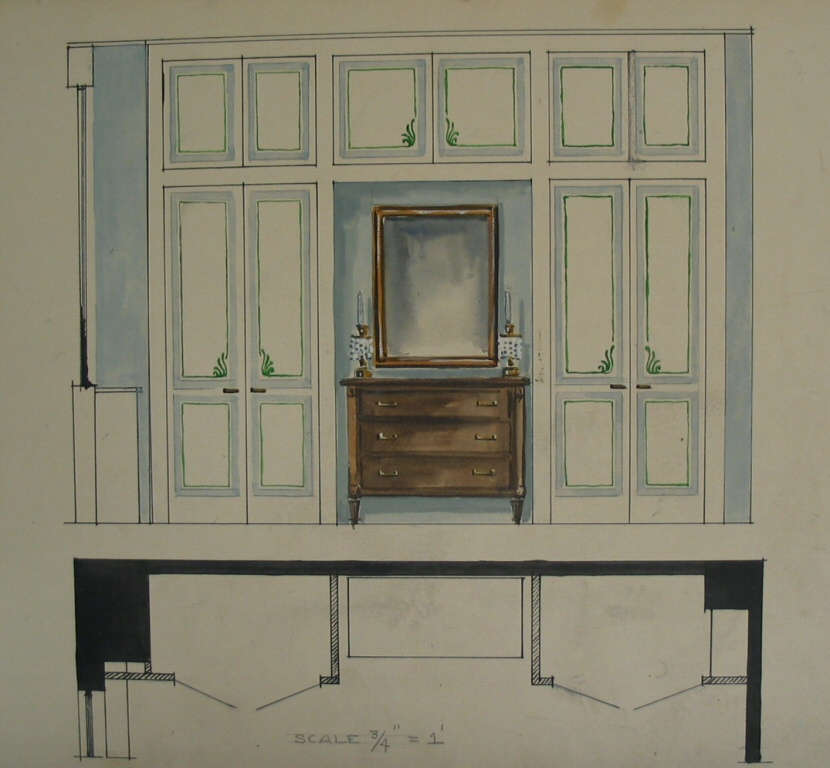 In pencil on the bottom of the recto: "SCALE 3/4"=1' " (previously written and erased in the upper right corner).