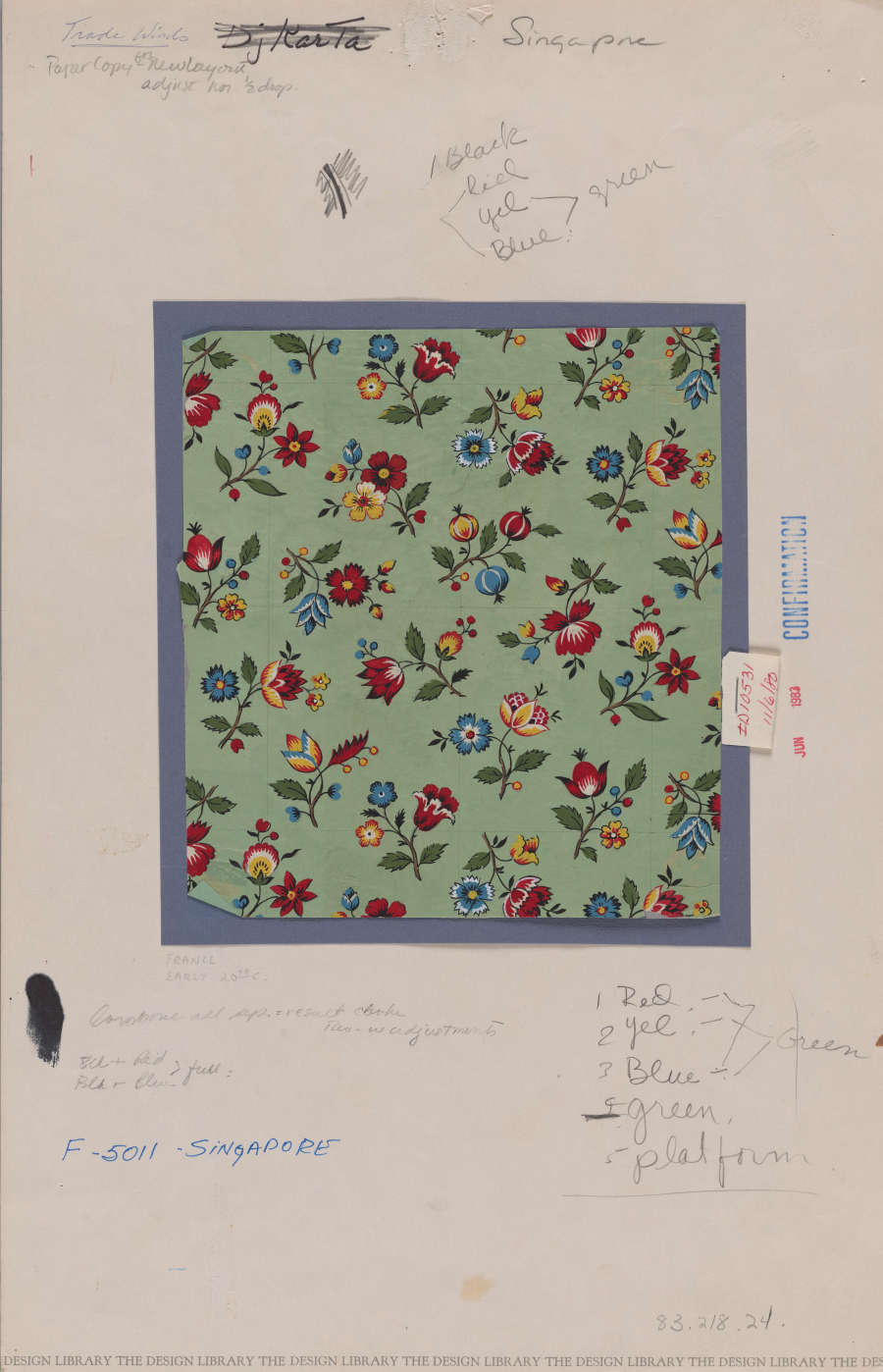 Repeated along lower border edge:DESIGN LIBRARY; color and size notes written on backing paper.