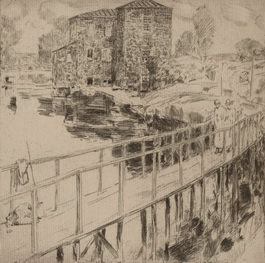 Original--Recto:monogrammed in pencil under platemark on right:CH (in circle) imp.; Titled in bottom margin mid-left:Water Mill L.I.; In pencil along bottom edge of sheet:Water Mill, L.I. 1018HA9 54581904(crossed out, but still visible); In top margin, mid right:No. 5; In blue ink in LR corner:1459-In Plate--Along right edge, between center and top:July22/CH(in circle)/1917
