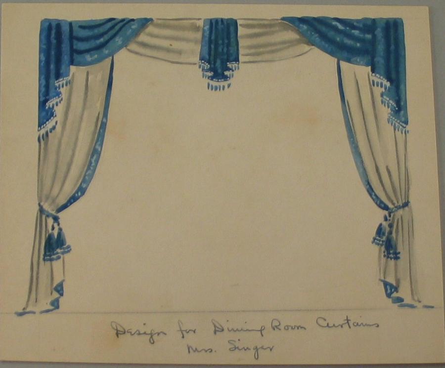 On recto in black ink script: "DEsign for Dining Room Curtains / Mrs. Singer".