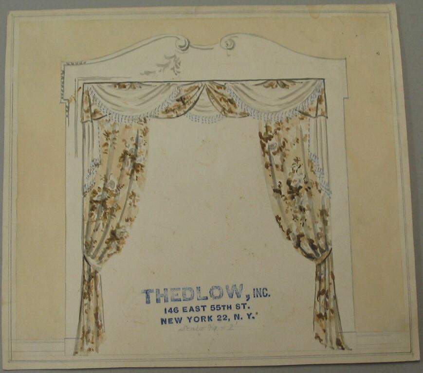 Marks: On verso in black ink, design stamp: "Designed for / DATE / SCALE / THEDLOW / 146 E. 55 ST. / NEW YORK CITY", and on recto in blue ink stamp: "THEDLOW, INC. / 146 EAST 55TH ST. / NEW YORK 22, N.Y." Credit / Object Number