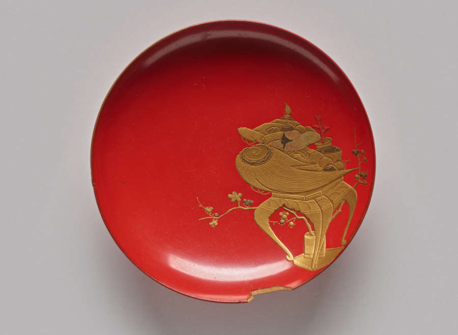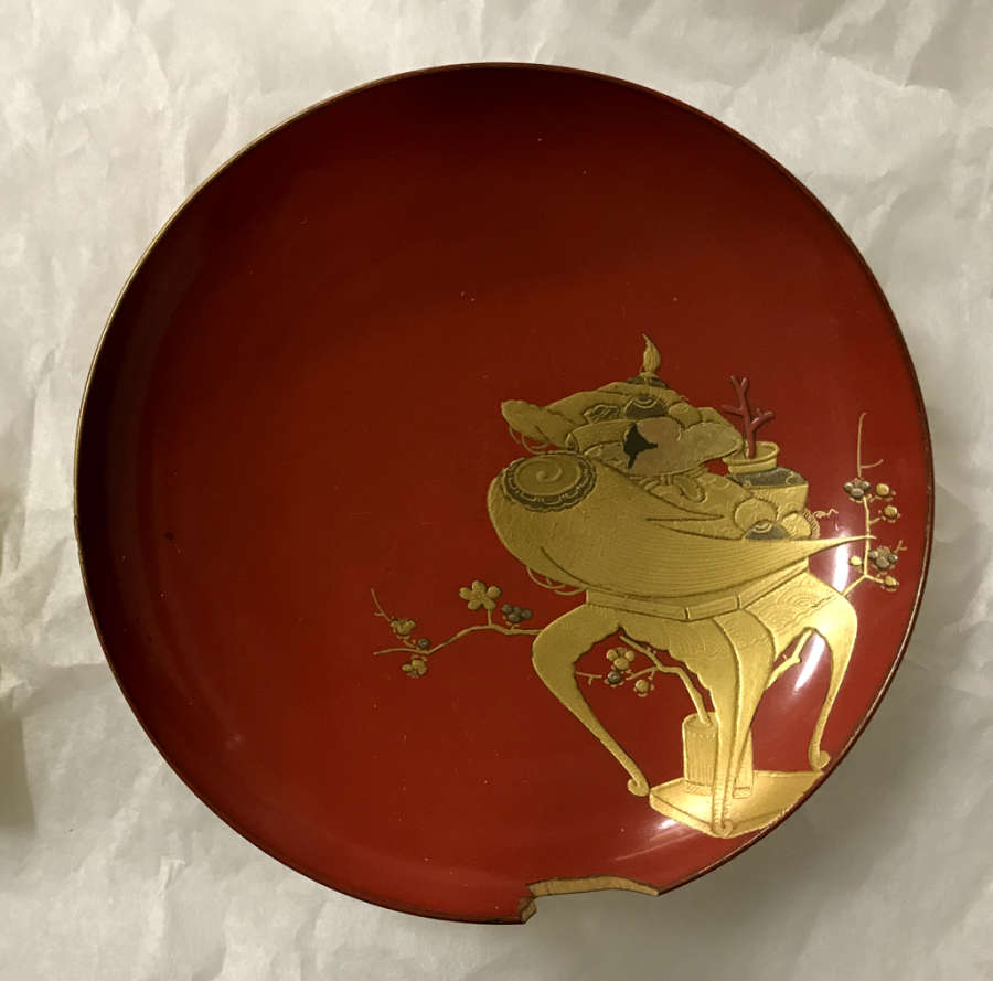 Wine Cup (Sakazuki) with Design of a Stand and Flowering Plum