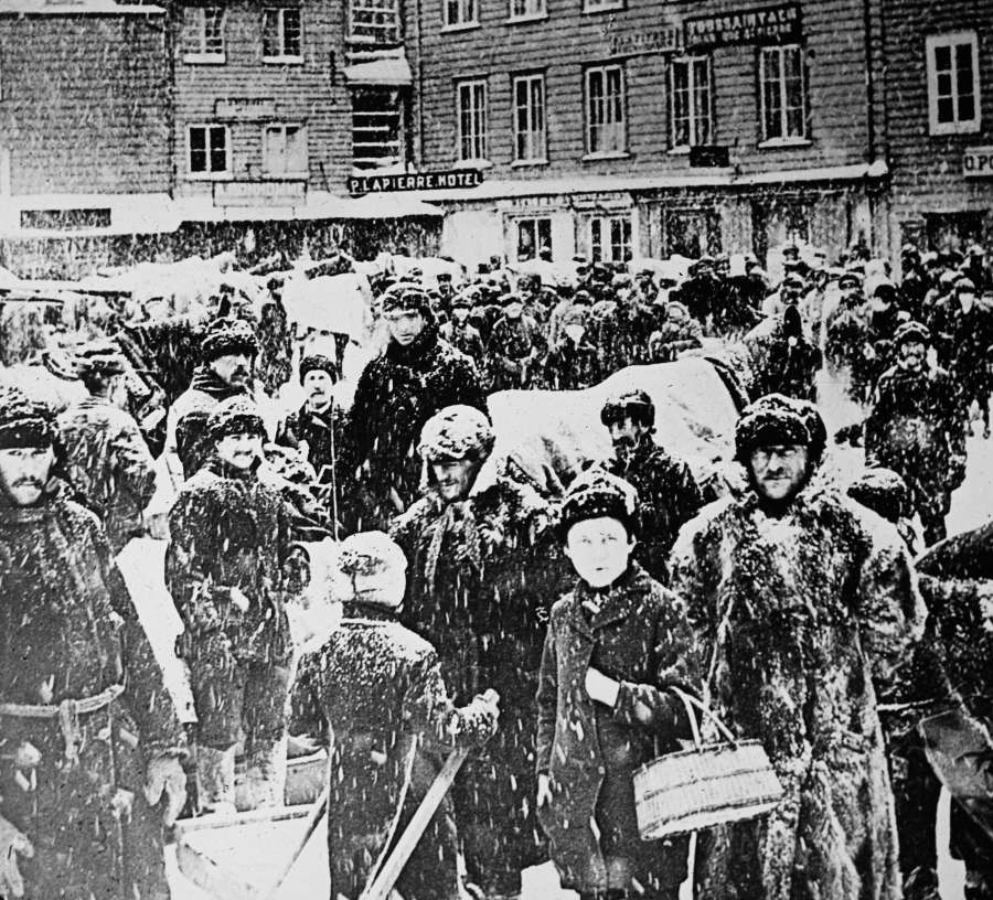 Winter--Market Day in Quebec, Snow Storm, late 1800s-early 1900s