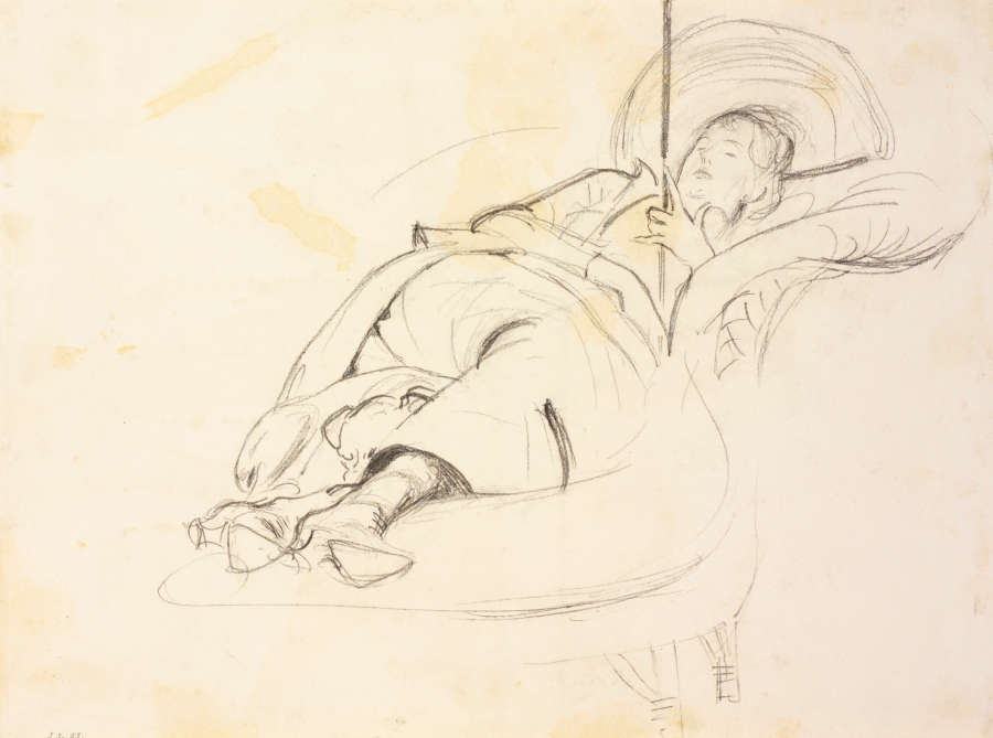 Woman with Umbrella Sleeping on a Chaise Longue, late 1800s-early 1900s