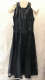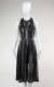Polyester and nylon lace with leather applique (dress); silk (slip)