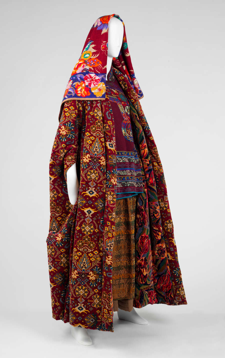 Woman's ensemble (sweater, skirt, overskirt, coat, scarf)