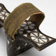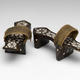 Wood with mother-of-pearl inlay; straps of metallic yarn and silk compound weave stitched to cotton plain weave and fastened with brass tacks